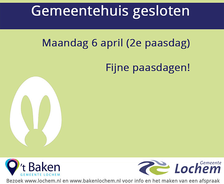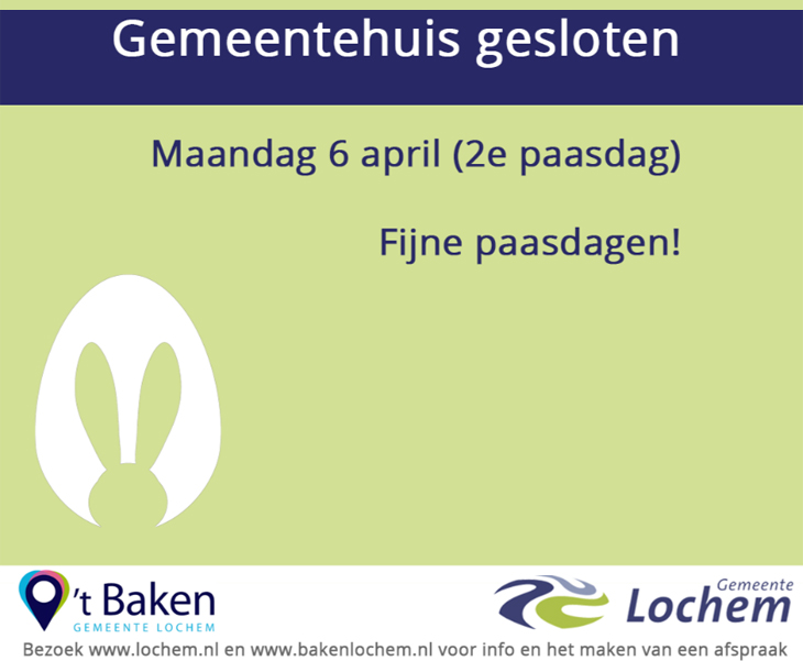 Op 2e paasdag is het gemeentehuis gesloten.