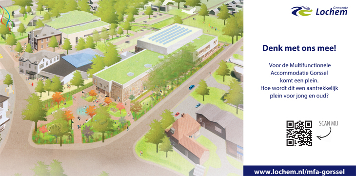 - Een ontwerp voor een mooi plein dat komt voor de MFA. Inwoners van Gorssel kunnen hierover meedenken. Bekijk de video op www.lochem.nl/mfa en vul uiterlijk op 6 mei de vragenlijst in.