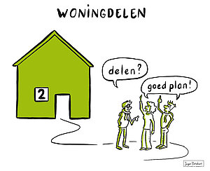 Woningdelen is een goede oplossing voor mensen die graag samen willen wonen. Bij woningdelen, deelt u de woning met een ander huishouden en blijft het één woning. Er kunnen verschillende redenen zijn. Bijvoorbeeld vanwege een mantelzorgsituatie of u wilt graag met een goede bekende of een familielid wonen. Ook een meergeneratiewoning is mogelijk: grootouders, ouders en kinderen wonen samen in een grote woning, helpen elkaar en het is gezelliger.